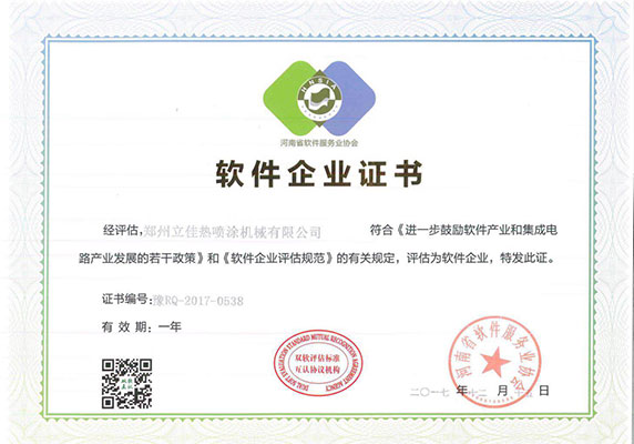 鄭州立佳熱噴涂機械有限公司順利通過了“雙軟企業”認證,是對我公司極大的鼓舞,一方面充分肯定了我公司多年來在智能設備中軟件開發方面工作的不懈努力,鼓勵公司繼續加快智能化熱噴涂設備的腳步;另一方面也說明我們在規范經營等方面又邁上了一個新臺階,充分證明了公司設備的智能化程度高,軟件產品的開發技術力量、技術服務水平又上了一個新的臺階,也表明了我們得到了政府、行業和客戶的認可,這是對我們歷史成績的肯定,更是對今后工作的巨大推動,公司可以利用稅收優惠加大研發的投入,以取得更大的發展,以便更好的開展業務。