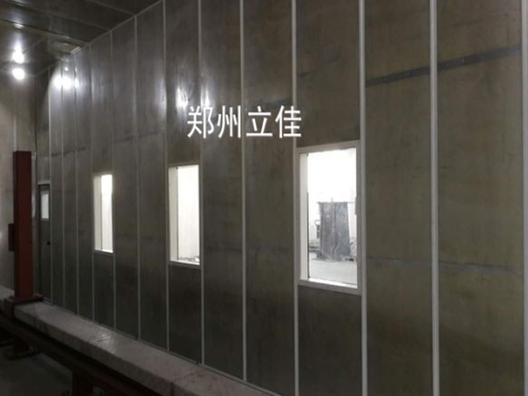 隔聲板標準板寬970mm,厚度100mm,長度可由房體所需高度確定。隔聲板經上海同濟大學國家聲學重點實驗室-國家唯一認可的噪聲測試數據中心測試(被測樣板未放石膏板),在125~4000Hz聲頻范圍的空氣隔聲量為42dB(A)。目前實際應用添加石膏板后的隔聲板的隔聲量更大,隔聲板由特制加厚的鋁合金H型材拼裝,膠泥塞縫,防止縫隙漏聲;